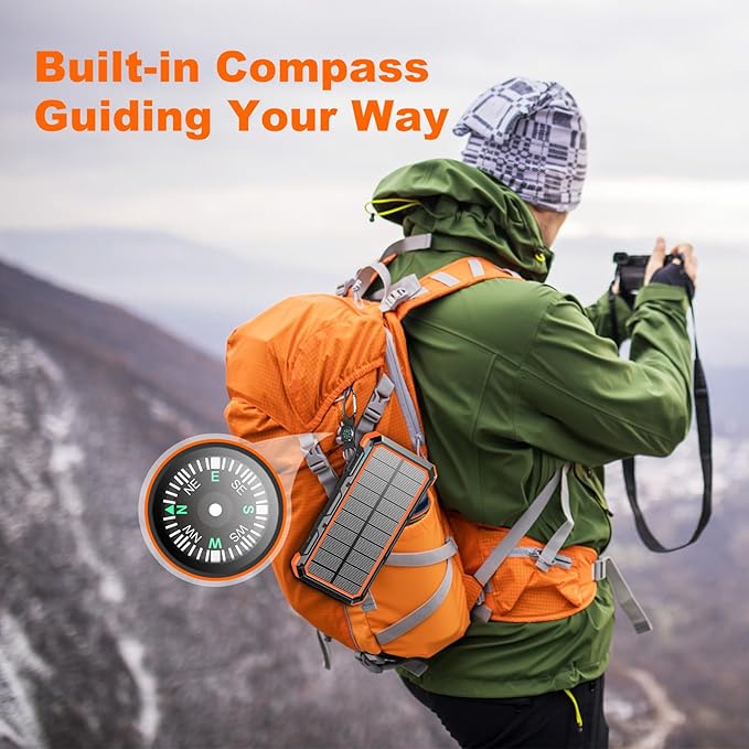 - 【49800mAh HUGE CAPACITY】Boasting a 49800mAh premium Li-polymer battery, this solar power bank can charge your devices multiple times. Recharge it via an adapter or solar panel, eliminating worries about running out of power. The smart protection IC chip ensures intelligent charging safety.