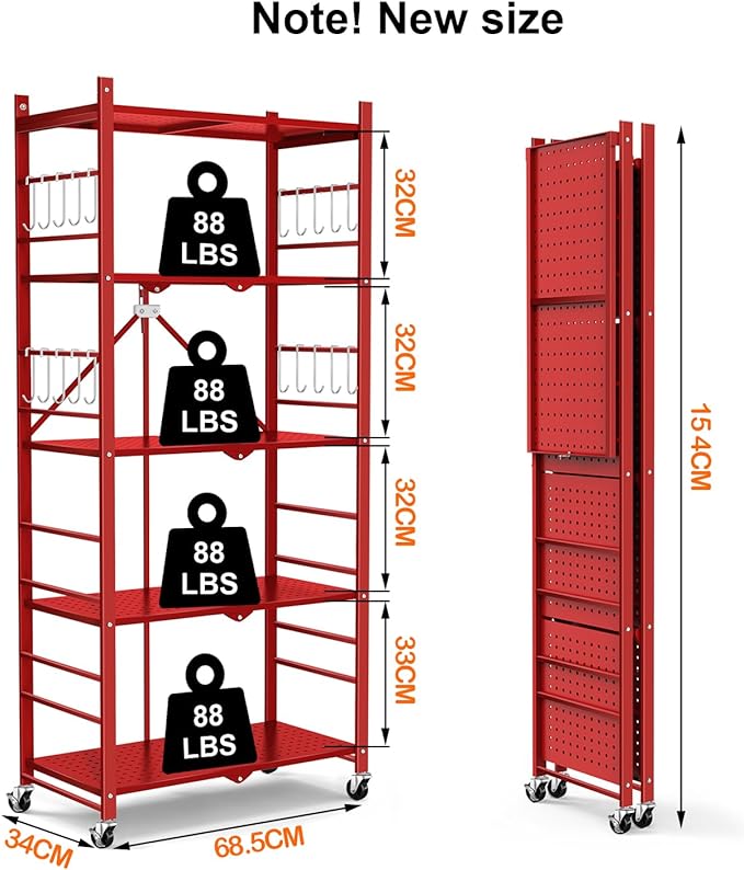 - What Will You Get: Order now, you will get 1* Himix 5-Tier Storage Folding Shelves; 20*hooks;4* Wheels; 4*adjust feet; 600 days no reason to return, 24* hours customer service.