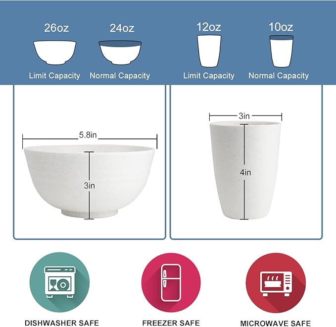 - โฆใ๐ฃ๐ฎ๐ฐ๐ธ๐ฎ๐ด๐ฒ ๐๐ป๐๐ถ๐ฑ๐ฒใ - Wrova 40pack wheat straw dinnerware sets contains 8pcs 10inches wheat straw plates, 8pcs 9inches wheat straw plates, 8pcs 6inches wheat straw plates, 8pcs 26oz wheat straw bowls,8pcs 12oz wheat straw cups. All of them are unbreakable,bpa and lead free,lightweight and easy to clean.