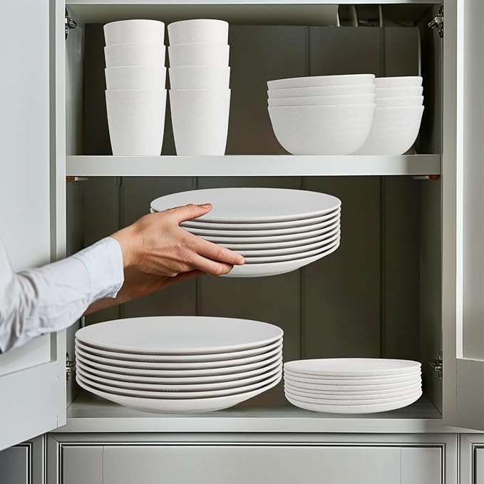 Wheat straw bowl and plate sets of 40 with cups for kids - Unbreakable plastic dinnerware sets service for 8 - Microwave and Dishwasher safe dish sets for kitchen and camping. White