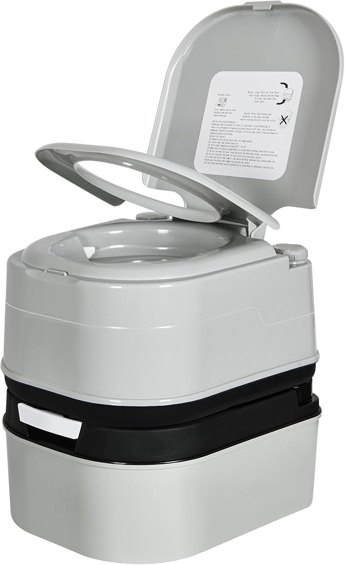 - ODORLESS AND CONVENIENT: The cassette toilet has a rotating pouring spout for quick and splash-free emptying; It includes a slide valve to securely close the waste and prevent leakage and odors when not in use; The toilet is easily disassembled with a press of the tank button and has a handle for effortless carrying