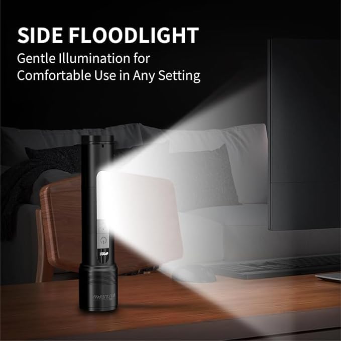 - 【Zoomable Flashlight】Features 5 adjustable modes, including a COB sidelight and zoomable beam, to suit various situations from focused tasks to broad-area lighting.