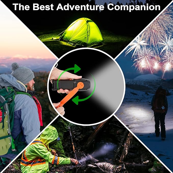 - FLEXIBILITY FOR VARIOUS SITUATIONS: Whether dealing with emergencies or daily use, crank radio flashlight cell phone charger meets your needs. Hand crank radio flashlight cell phone charger versatility and reliability make it a must-have item for outdoor adventures and everyday life