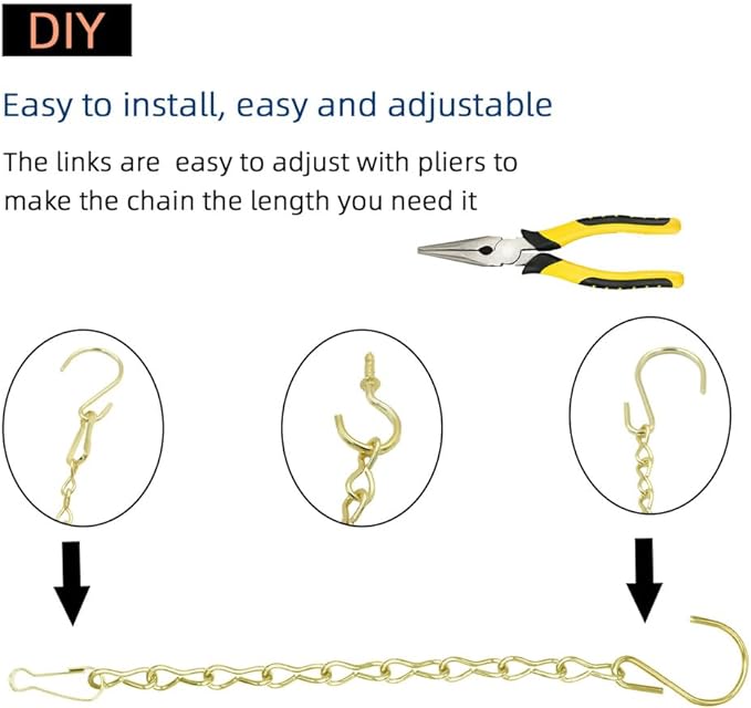 - ?…EASY TO INSTALL, EASY AND ADJUSTABLE: Hooks and clips are supplied. bird feeder chain can be easily DIYed to different sizes, allowing for the versatile hanging of various items. By customizing the chain's length, you can ensure a perfect fit for different objects, chain with hooks for plants, brass hanging planter
