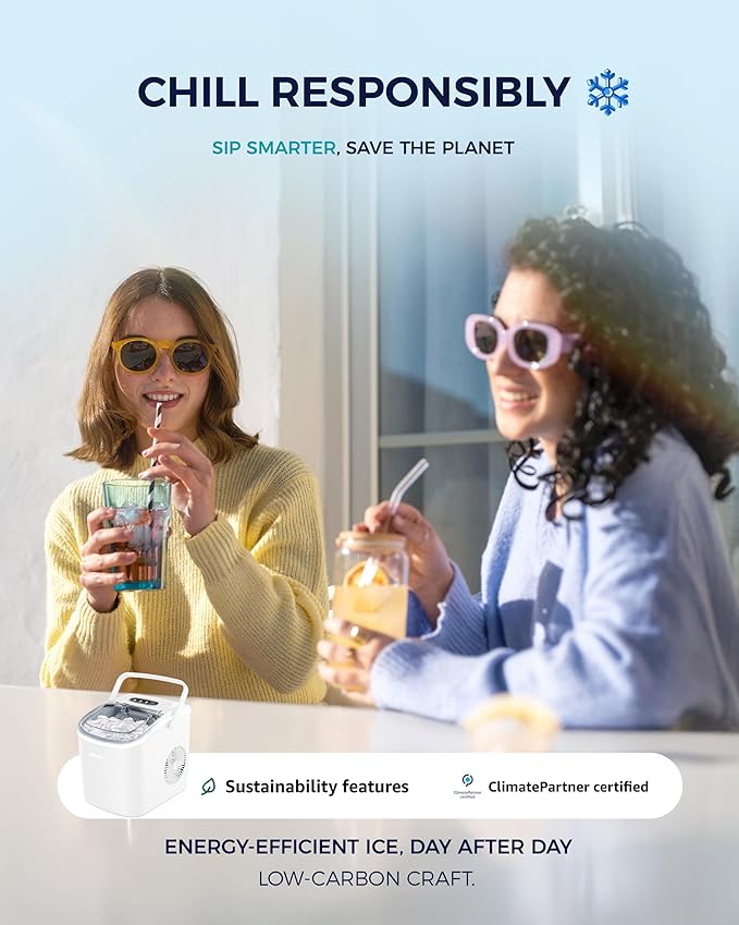 - Smart Operation & Self-Cleaning: The ice maker has advanced infrared sensor. The "ICE FULL" indicator flashes remind you to take out ice to prevent overflowing when the basket is full. And it'll remind you to add water by flashing "ADD WATER". Additionlly, the compact ice maker has a one-touch auto-cleaning function. Press the “ON/OFF” for 5s after adding water to run automatic mode for 30mins. Just get a clean ice maker without washing it by yourself