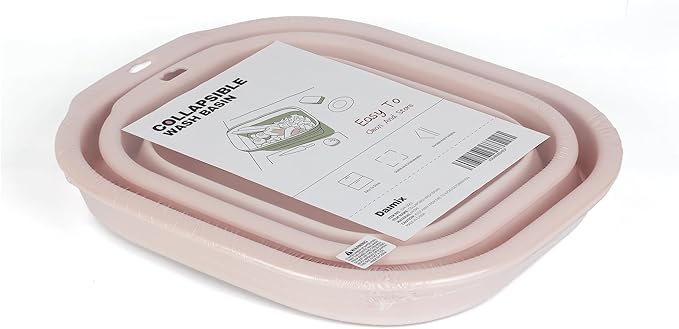 - PORTABLE DESIGN: This collapsible pink washbasin has a simple design, easily pops up when in use and folds flat when not in use, only 1.5 inches thick, saves more than 80% of storage space, comes with hanging holes for easy hanging and carrying, perfect for home and outdoor activities.