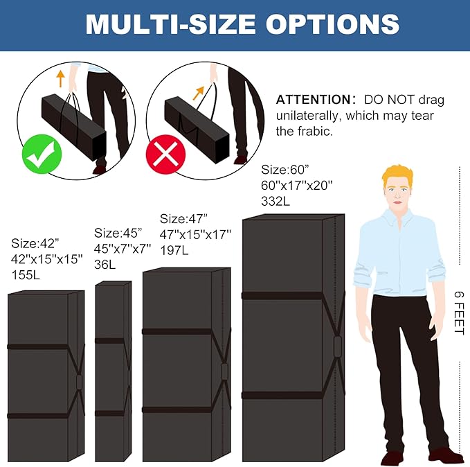 - 45 Inch Large Capacity: The 45 inches tripod carrying bag is lightweight and practical, and can be used to store tripods, tents, fishing rods, umbrellas, and sports equipment. Ideal for camping, hunting and sport travel and even fits for umbrella