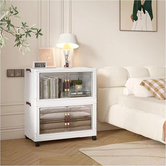 - 【These storage boxes are very good in all aspects】: They are very sturdy and well-designed. It is easy to install together and comes with built-in wheels. The wheels are very stable. It is easy to move, These boxes can contain a lot of things, saving space, and the door can be closed well. They look very elegant and fashionable