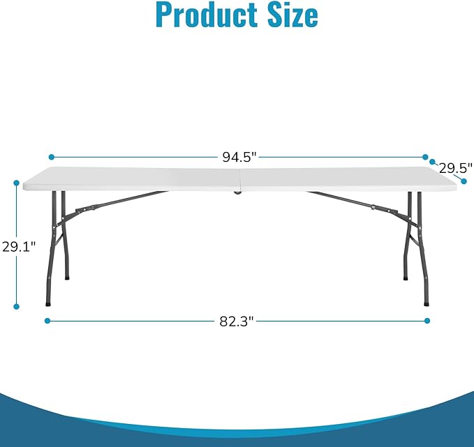 PayLessHere | 8FT Folding Table | Portable Plastic Table with Carry Handle | Waterproof & Foldable Table Design | Steel Frame with Lock | White | for Events, Camping, Indoor & Outdoor Use