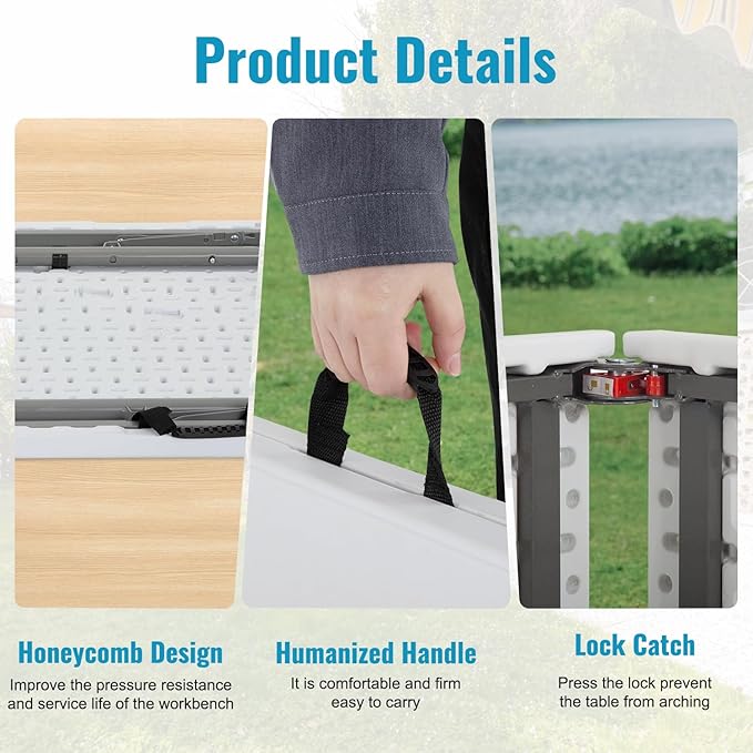 - PORTABLE & CONVENIENT: This foldable picnic table features a compact design with a side lock and handle, making it easy to carry and store. Folds quickly for convenient transport and storage.