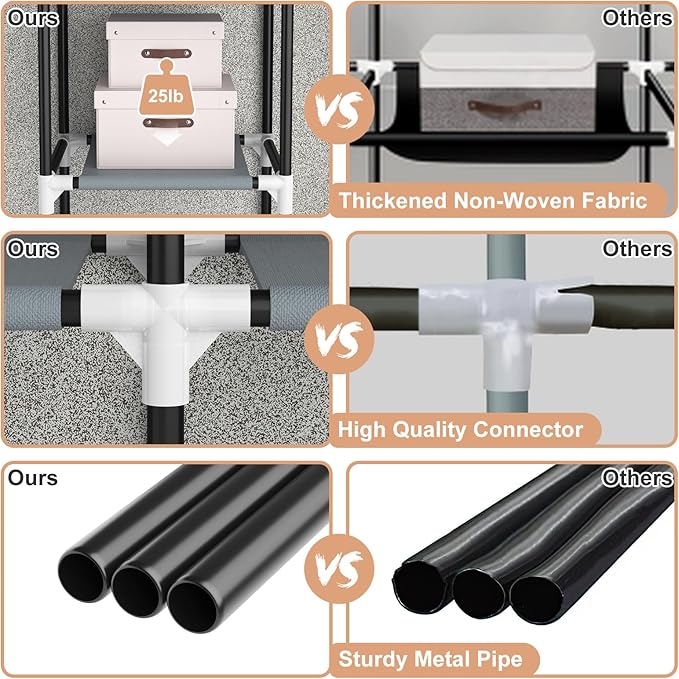 - [Sturdy Portable Wardrobe] This portable covered clothes rack is made of high-quality waterproof non-woven fabric cover, reinforced anti-rust steel pipe and thickened PP plastic connectors, portable wardrobe closet the metal frame is stable, not easy to bend, able to support heavier weight, and can be used for many years, to meet your long-term storage needs.