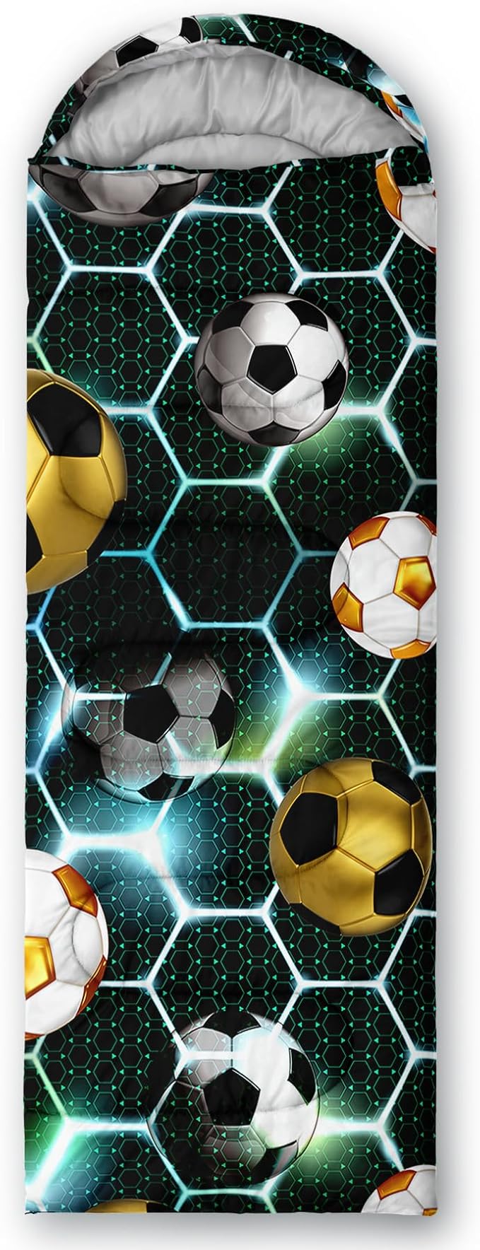 - 【Fits For 3 Seasons】: Size - 31 by 90 inches (W x D). Our Soccer Ball Sports sleeping bag can be used in 3 seasons with a design temperature of 32℉-77℉(0℃-25℃). These Sleeping bags also have a weather resistant waterproof design to keep you warm and prevent you from any dampness.