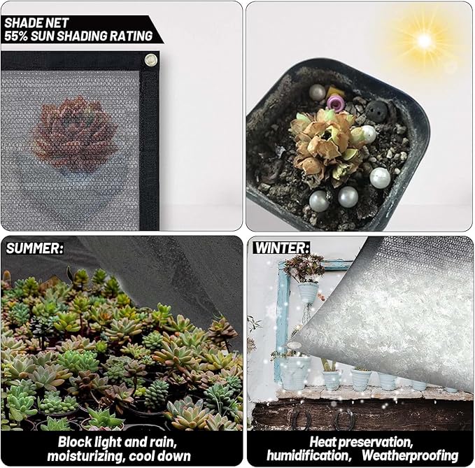 - ??5% Shading Rate?‘Made of 100% New High Density Polyethylene (HDPE) fabric material, has a shading rate up to 55% can avoiding direct sunlight while allowing free air circulation.