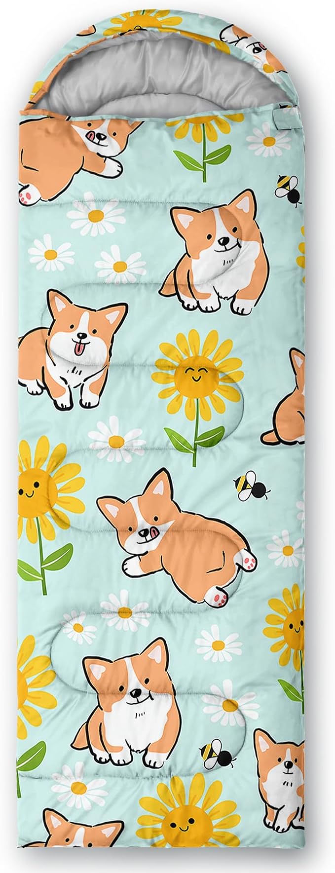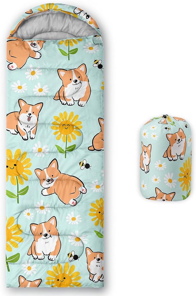 - 【Fits For 3 Seasons】: Size - 31 by 90 inches (W x D). Our Cartoon Corgi sleeping bag can be used in 3 seasons with a design temperature of 32℉-77℉(0℃-25℃). These Sleeping bags also have a weather resistant waterproof design to keep you warm and prevent you from any dampness.