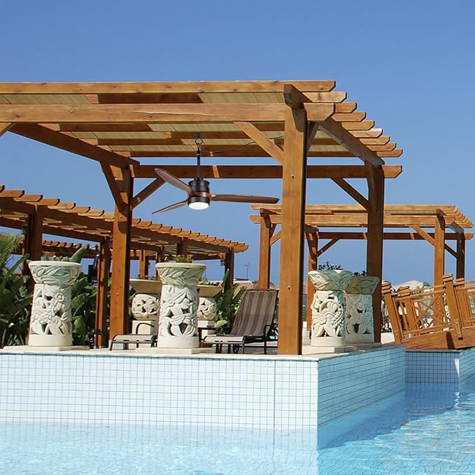 EKIZNSN 42“ Wet Rated Ceiling Fans with Lights Outdoor Hanging for Gazebo Waterproof, DC Motor w 3 Reversible Walnut Wood Blades, Walnut