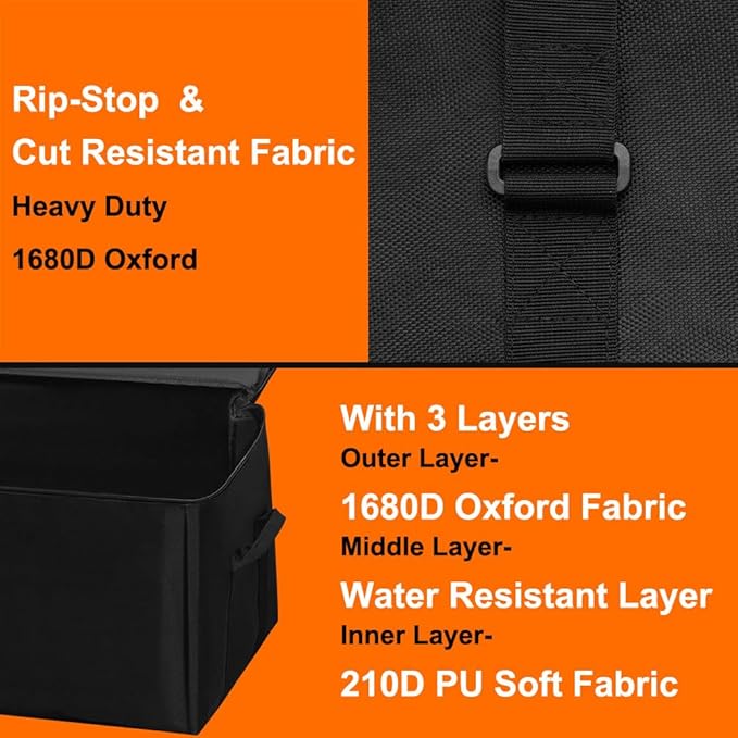- 【Water Resistant & Long-lasting】Constructed with a water resistant 1680D oxford cloth exterior, 210D PU fabric interior, and double smooth metal zippers, the camping organizer provides effective protection for your tents against water and durability for long-lasting use. The camping storage containers serve as an ideal replacement for your old bags, ensuring the safety of your equipment during extended periods.