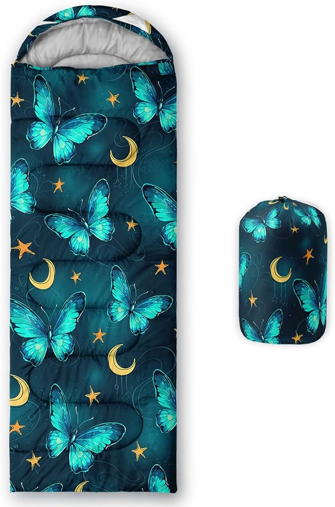 - 【Fits For 3 Seasons】: Size - 31 by 90 inches (W x D). Our Butterfly sleeping bag can be used in 3 seasons with a design temperature of 32℉-77℉(0℃-25℃). These Sleeping bags also have a weather resistant waterproof design to keep you warm and prevent you from any dampness.
