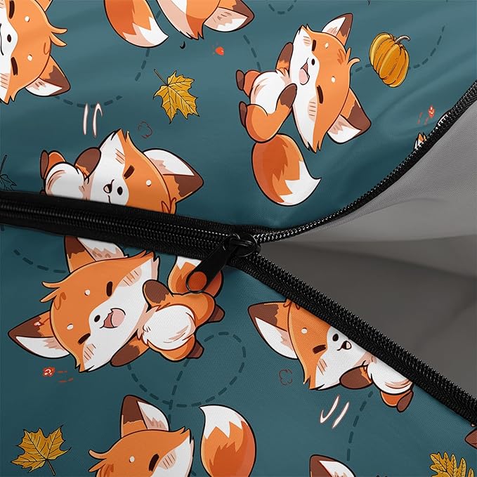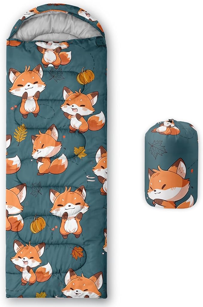 - 【Fashion Design】This unique sleeping bag features a squirrel pattern design and comes with autumn golden fallen leaves and pumpkin.It is waterproof and lightweight, making it easy to carry and suitable for camping and mountaineering.