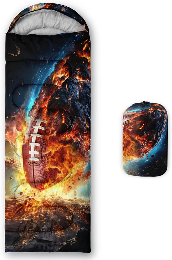 - 【Fashion Design】The unique American football pattern design adds a wonderful atmosphere to your outdoor activities.The sport-themed sleeping bag uses comfortable fabric to make you feel warm and comfortable,suitable for adults and children.