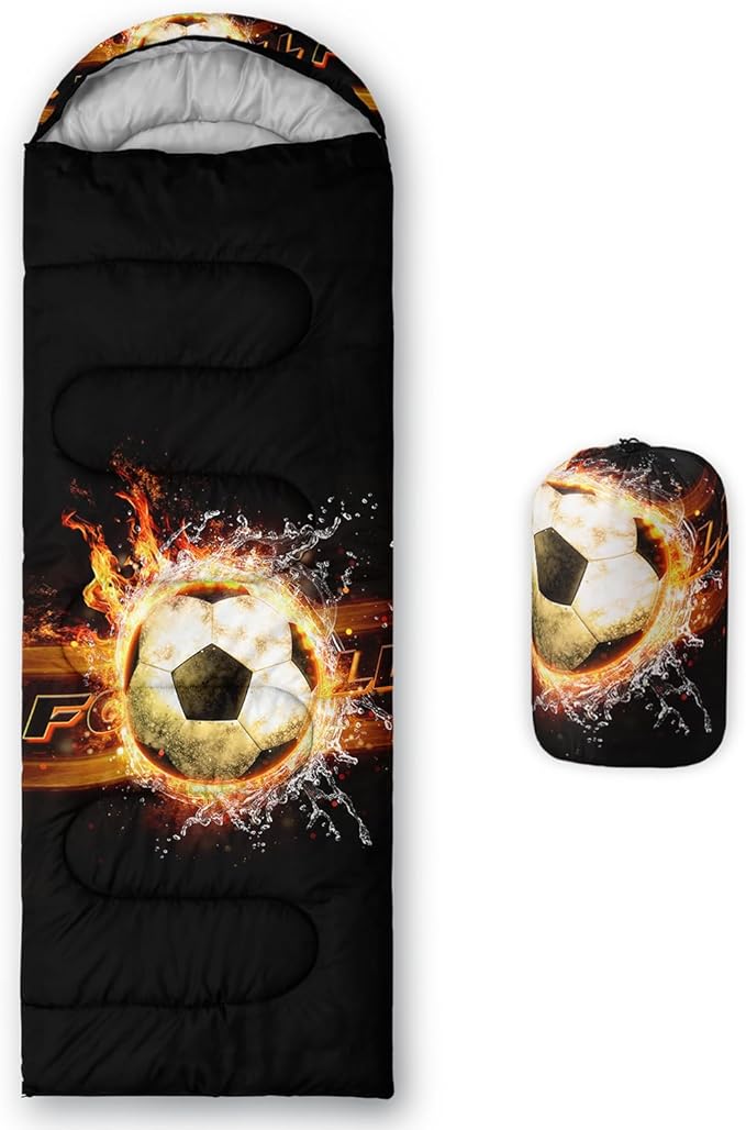 - 【Fashion Design】This sport-themed sleeping bag is made of lightweight and comfortable material,making it perfect for camping.This cold weather sleeping bag is perfect for kids who love sports,especially those who love football.It can also be given as a gift to your child.