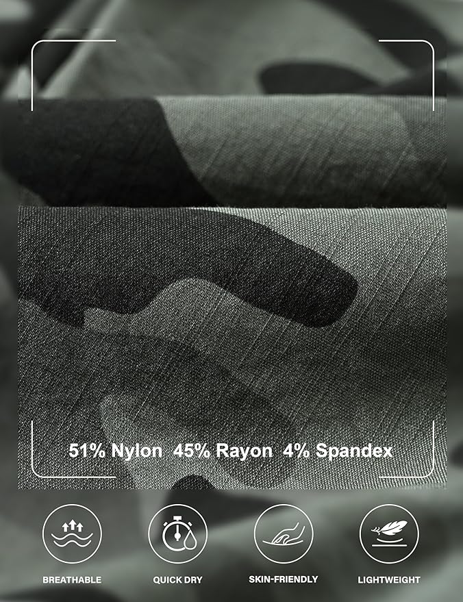 - Fabric is lightweight, quick dry, slightly elastic, breathable and comfortable, keeping you cool and fresh throughout the summer.