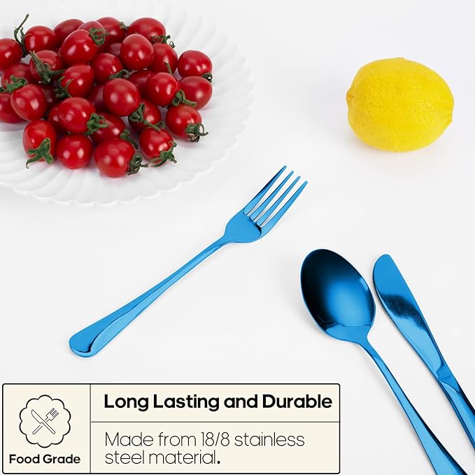 Travel Utensils with Case, Quatish Portable Silverware Set for Work, Stainless Steel Reusable Travel Cutlery Set, Fork and Spoon Set for Camping, Picnic, Gadgets, Lunch Box for Men, Blue