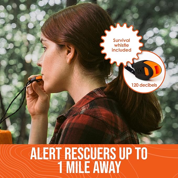 - Incredibly Compact - At 4.1oz, this lightweight thermal sleeping bag bivy won’t weigh you down. It packs down nicely in the 4” x 3” stuff sack and includes a 120-decibel whistle to alert rescuers up to 1 mile away. Perfect for any bivvy or bugout bag.