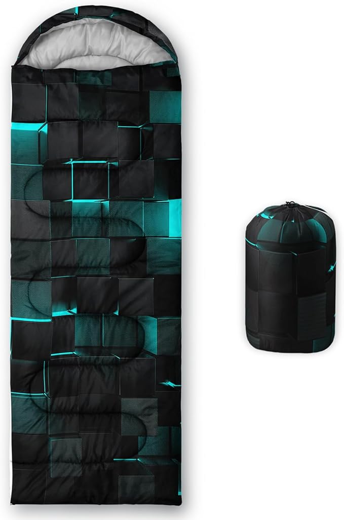 - Premium Material - The camping sleeping bag is made of premium 220T ripstop microfiber fabric,comfortable and breathable,lined with 220T cotton pongee. The waterproof outer protective shell is made of a unique hexagonal design and high-quality Material with double S-stitching and microfiber filling for optimal warmth and insulation to protect you from the elements. The bright colors are loved by boys and girls,great for kids and adults alike!