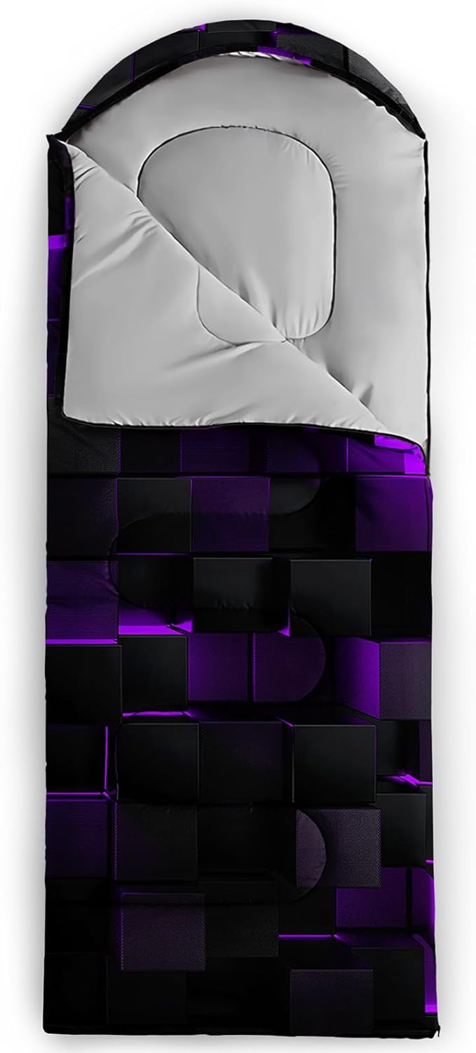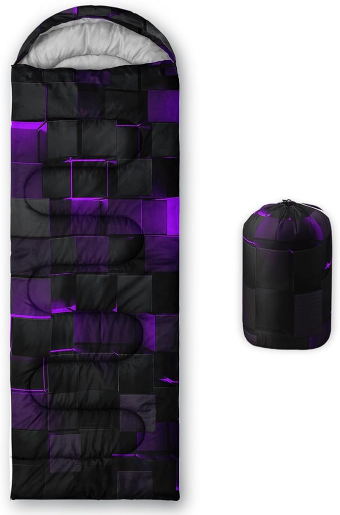- Premium Material - The camping sleeping bag is made of premium 220T ripstop microfiber fabric,comfortable and breathable,lined with 220T cotton pongee. The waterproof outer protective shell is made of a unique hexagonal design and high-quality Material with double S-stitching and microfiber filling for optimal warmth and insulation to protect you from the elements. The bright colors are loved by boys and girls,great for kids and adults alike!