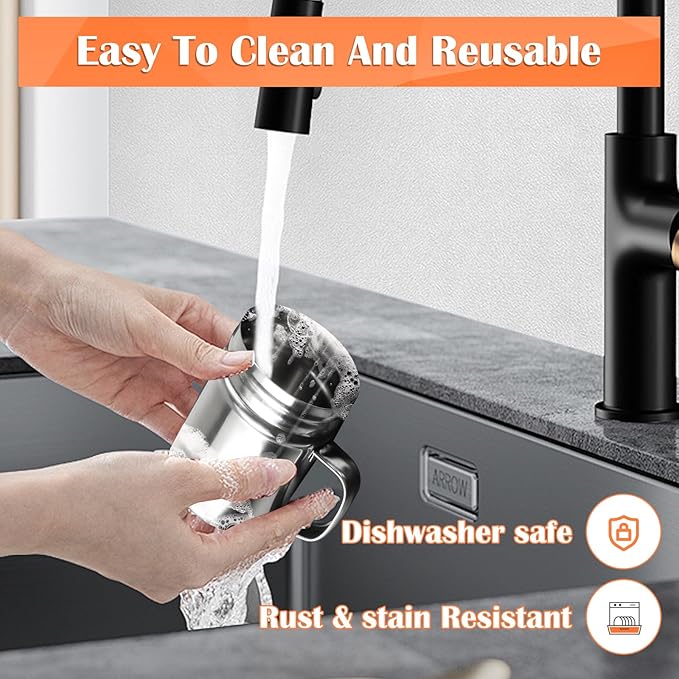 - Durable material: Made of food grade 304 stainless steel, stainless steel has good corrosion resistance,is strong and durable, easy to clean,not easy to rust, has good oxidation resistance,the material is healthy and stable,has no odor, and can be used directly to store food