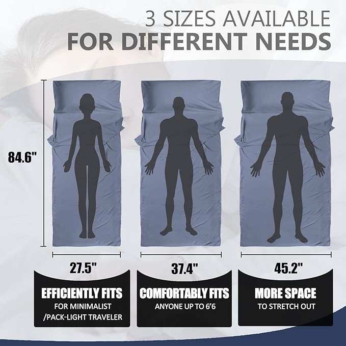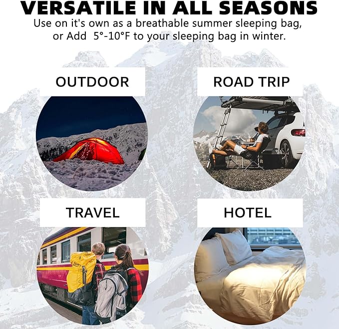 - Versatile Use: Our sleeping bag liner is the perfect addition to your outdoor sleep system or serves as a warm-weather ultralight sleeping bag. It's also the ideal companion for various scenarios. Whether you're staying in a hostel, enduring long bus rides, or embarking on plane journeys, this liner adds extra warmth and acts as a protective barrier.