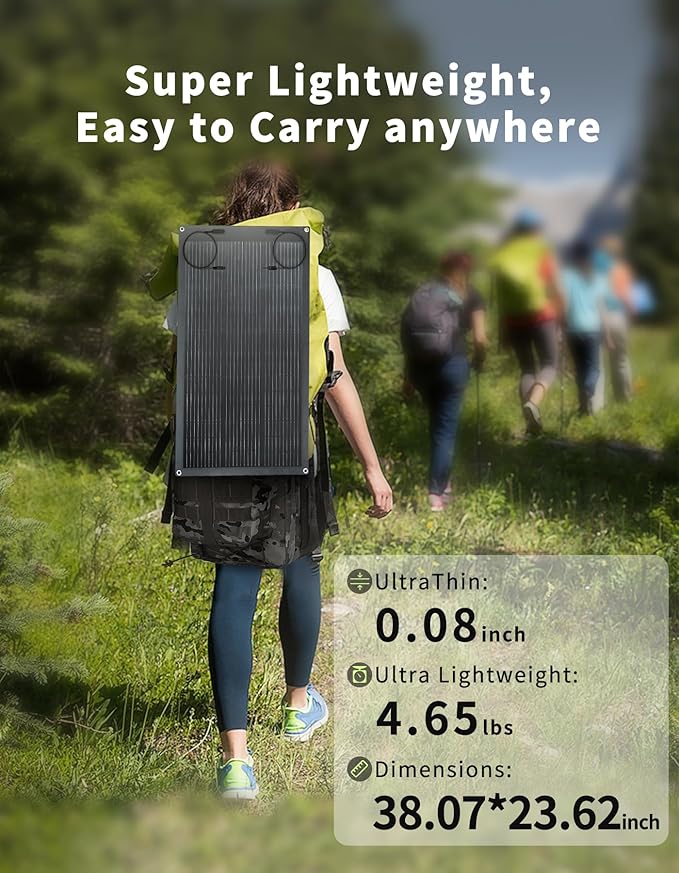 - Waterproof and Dustproof - The solar panel is an IP68 Waterproof that effectively protects against water splashes and dust, ensuring reliable outdoor performance. It is more durable than traditional glass and aluminum panels and features built-in bypass diodes for enhanced performance.