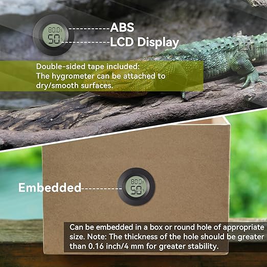 - [ Small and Portable, Can be pasted or inlaid ] Diameter : 1.8" (4.5cm) , Thickness: 0.55" (1.4cm). Widely used for home, office, car, cellar, tank, humidifiers, 3d printer, Caring for reptiles, etc. Can be pasted on the wall, or punched and embedded in boxes, barrels, glass jars etc.