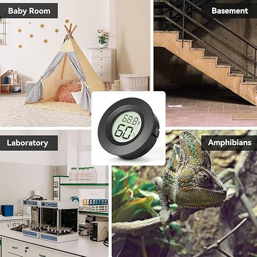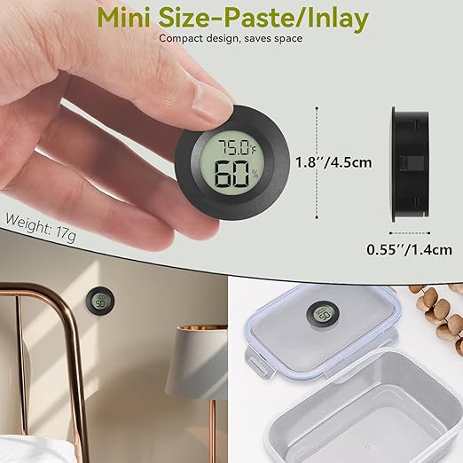 - [ Small and Portable, Can be pasted or inlaid ] Diameter: 1.8" (4.5cm) , Thickness: 0.55" (1.4cm). Widely used for home, office, car, cellar, tank, humidifiers, 3d printer, jars, Caring for reptiles, etc. Can be pasted on the wall, or punched and embedded in boxes, barrels, glass jars etc.
