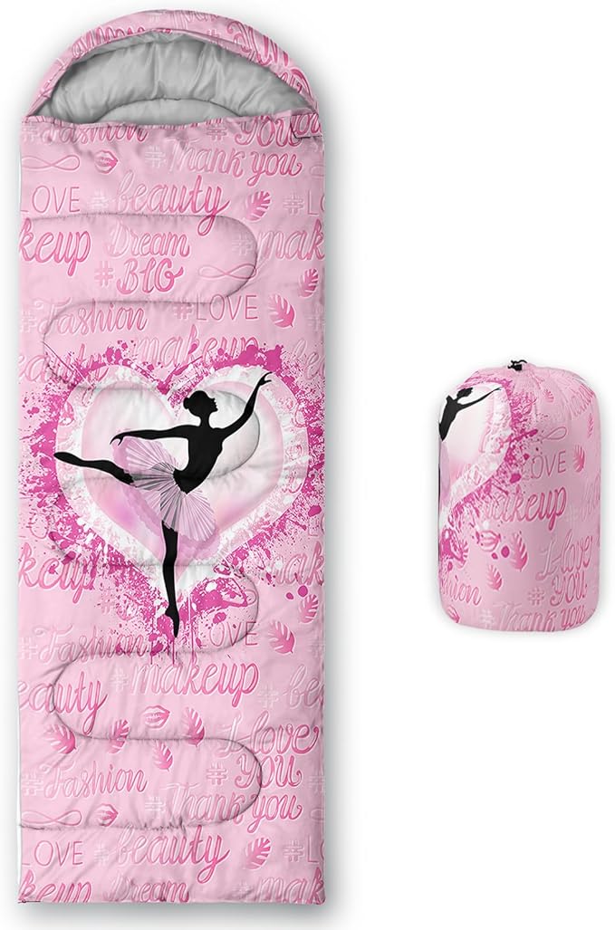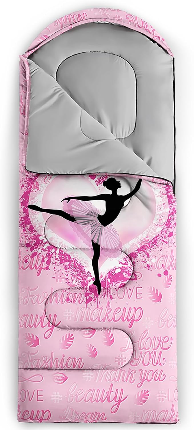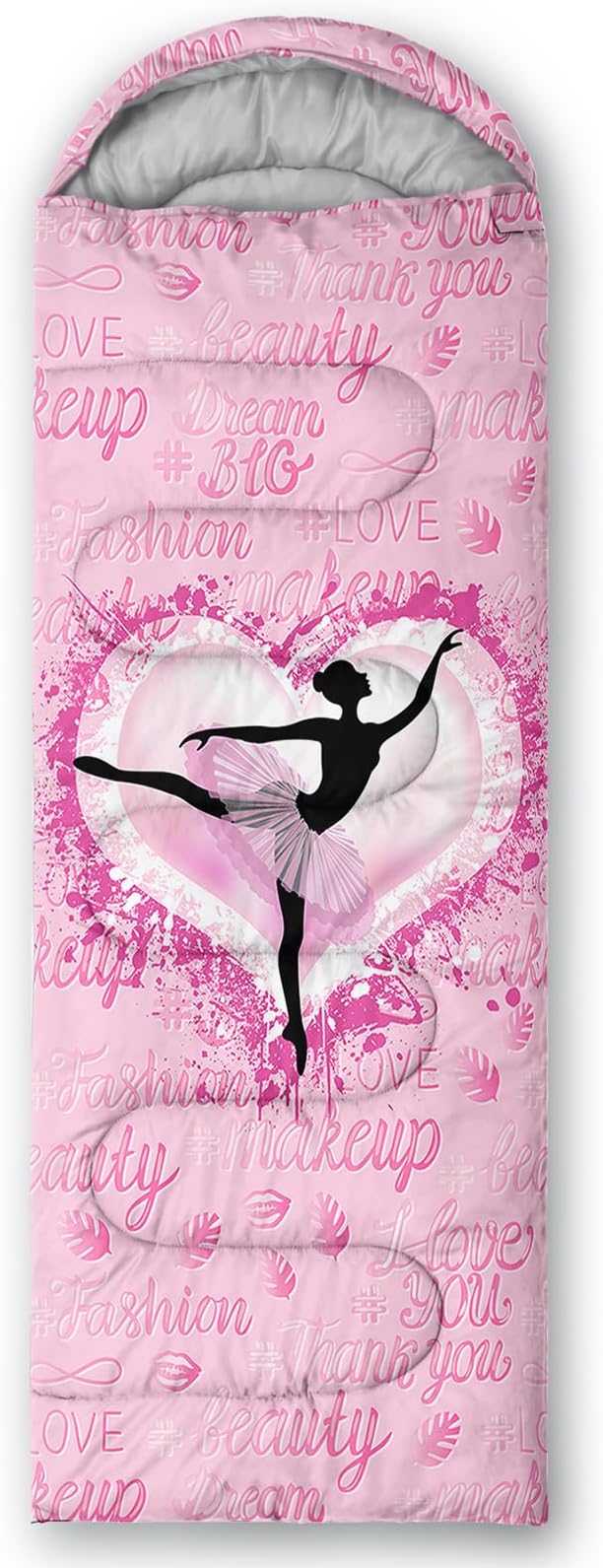 - 【Fits For 3 Seasons】: Size - 31 by 90 inches (W x D). Our Ballerina Love sleeping bag can be used in 3 seasons with a design temperature of 32℉-77℉(0℃-25℃). These Sleeping bags also have a weather resistant waterproof design to keep you warm and prevent you from any dampness.