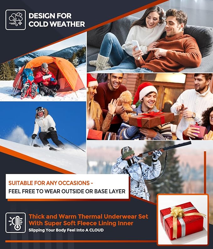 - Best Gift Choice: We stock these heavyweight thermals for men in a wide range of sizes. If your family enjoys hunting;camping;snowboarding;skiing;cycling or running then it will be a great choice. A wonderful Gift for mens Christmas Birthday