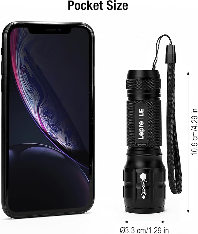 - ZOOMABLE FLASHLIGHT- Led flashlight has ability to narrow or widen the area you wish to light. You can stretch the head-pulling zoom to adjust its focus and get spot beam or flood beam you need.