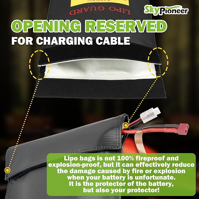 - 【Exceptional Service】:SkyPioneer factory is engaged in Lipo safe bags industry for about 9 years, has mature production experience and great product quality. If you have any problems in the process of using or are not satisfied with our products, please feel free to contact us, we will fix the issue for you!
