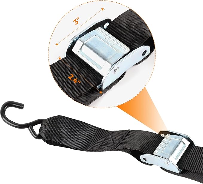 - ADJUSTABLE STRAPS - The truck bed net comes with four cam buckle straps for easy manual tightening and adjustment. Straps have a maximum length of 47 inches. Ideal for fragile cargo that could be damaged from overtightening.