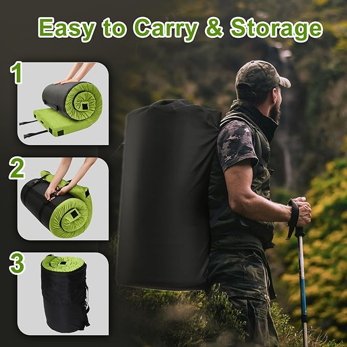- ๐๏ธใWaterproof CoverใThe super soft velvet fabric is detachable and washable. TPU waterproof membrane is used at the top and bottom to protect foam from rain. Honeycomb shaped anti slip bottom, more slip resistant than other sleeping mats. The sleeping mat is also equipped with a layer of knitted fabric that absorbs water and prevents dust. Multiple protections to protect foam.