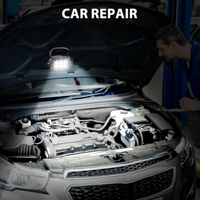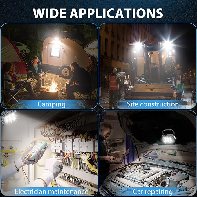 - High Brightness & Professional-Grade Lighting:Equipped with CREE LED chips, delivering up to 2400 lumens of powerful lighting, ensuring clear visibility in dark environments.120° wide-angle floodlight design provides broader coverage, perfect for garages, workshops, construction sites, and more.
