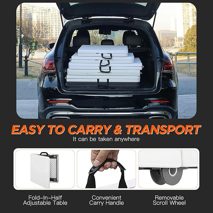 - ๐ใTake The folding table to AnywhereใThe picnnic table comes with a handle, great for commercial use, parties, backyard events, traveling, family exercises, etc. You can take the plastic table to everywhere you want.