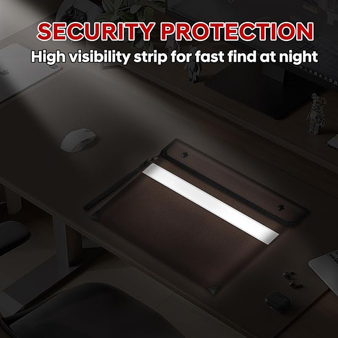 - ☔【Unique Design】This fireproof bag is not only functional but also stylish. It has a unique double-sided reflective strip that allows you to clearly see its position in the dark no matter how you place it. Its zipper is a treated waterproof zipper,combined with flip closure design, so that the fireproof bag can protect your documents under high-pressure water cannon, but note that it is not waterproof when submerged underwater.