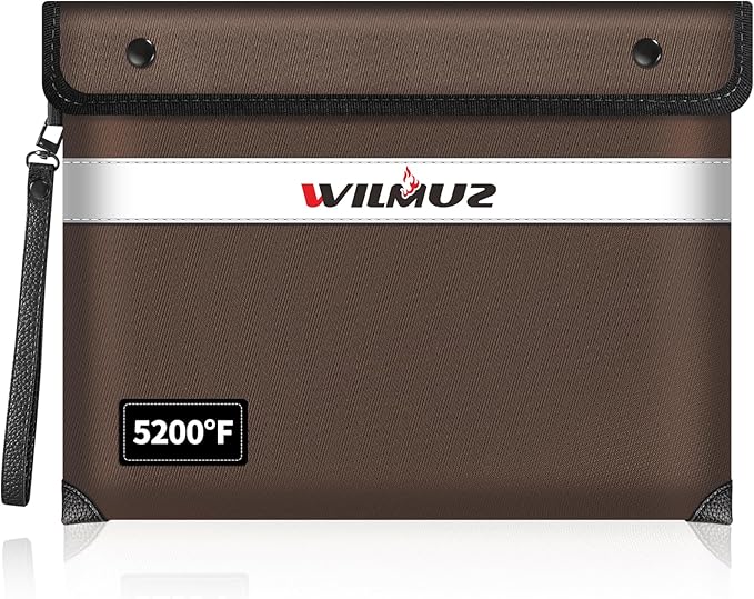 - 🧯【Reliable Material】This Wilmuz fireproof bag uses high-quality fireproof materials. From the outside to the inside, it is composed of eight layers of materials such as glass fiber cloth,heat insulation cotton, and aluminum foil, making it pass Global Flammability Standards (US labs) and Vertical Combustion Testing ( SGS UL94 V-1) certification, enough to withstand high temperature of 5200℉. its edge seams have been strictly waterproofed to withstand high-speed jets of fire hose.
