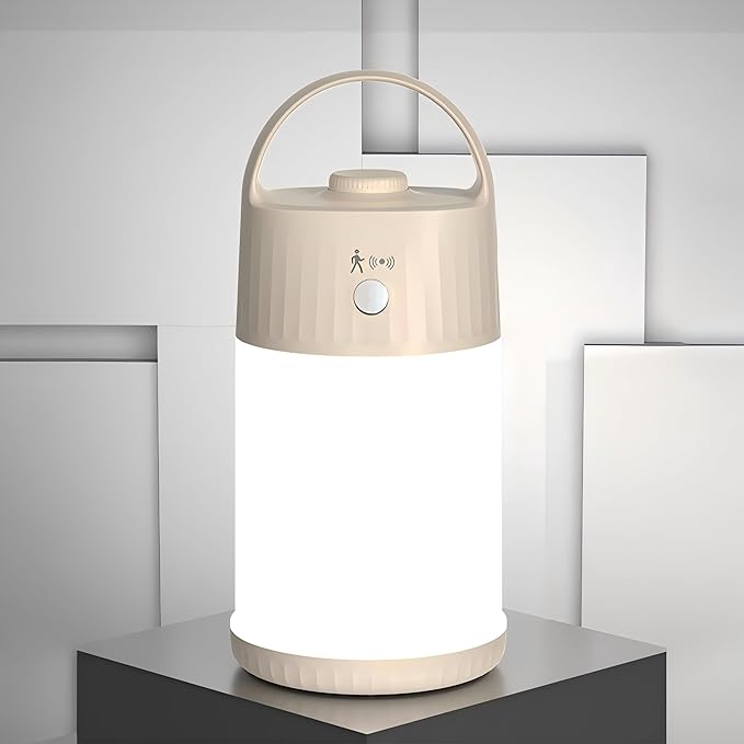 Motion Sensor LED Night Light - Cordless Battery Powered Table Lamp, Portable Lamps Lantern for Outdoor Camping Tents, 4 Brightness Level, Press Dimmable Safe Night Lights,1 Pack (Apricot)