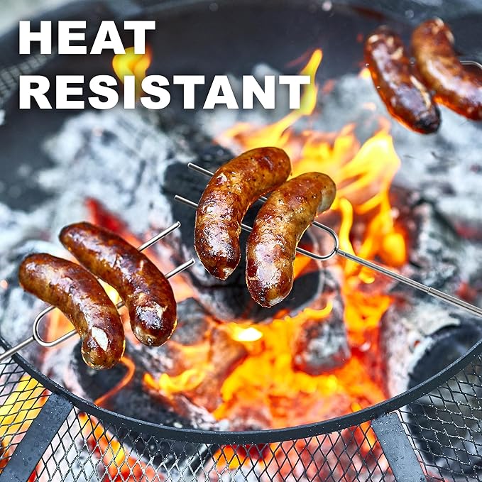 - Premium Quality, Perfect For Bonfires: Take camping to the next level! These Telescopic Marshmallow Roasting Sticks are made of non-toxic heat-treated 304 Stainless Steel. The rods and tubes are arc-welded in place with a prong distance of 3.5 inches for optimal roasting. Built with a heat-resistant finely polished wood handle with a plastic end to hold the metal so it does not get warm all the way.