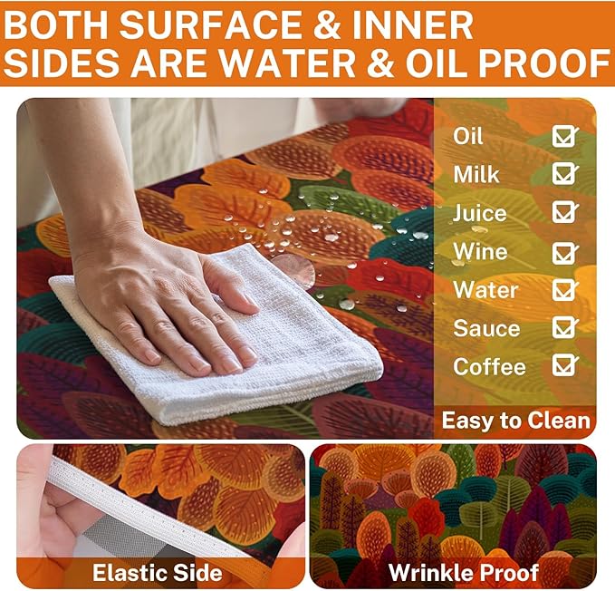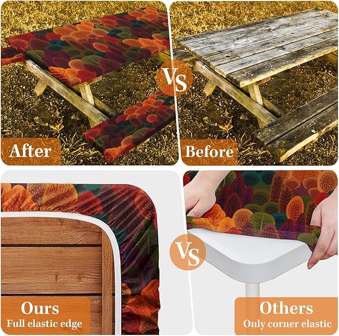 Picnic Table Cover with Bench Covers Elastic Edges, Fall Tree Fitted Table Cover, Outdoor Patio Camping Essentials 72 Inch 3PCS, Waterproof Camping Fitted Tablecloth with Drawstring Bag