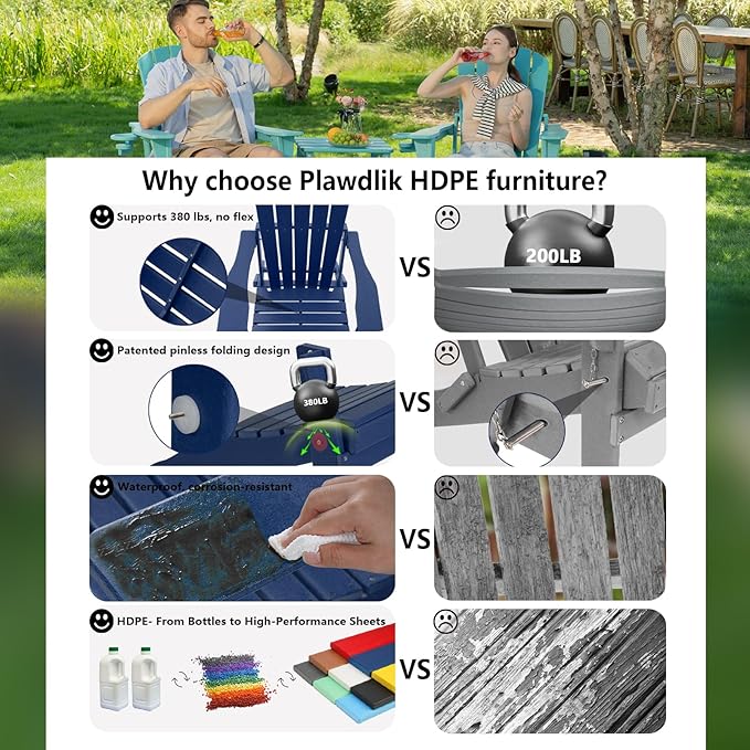 - ☘️【aesthetics】 When you put Plawdlik adirondack chair set of 2 or 8 together, you will be surprised to find that they all basically keep the same color and texture,Will make the overall aesthetics of your patio stronger