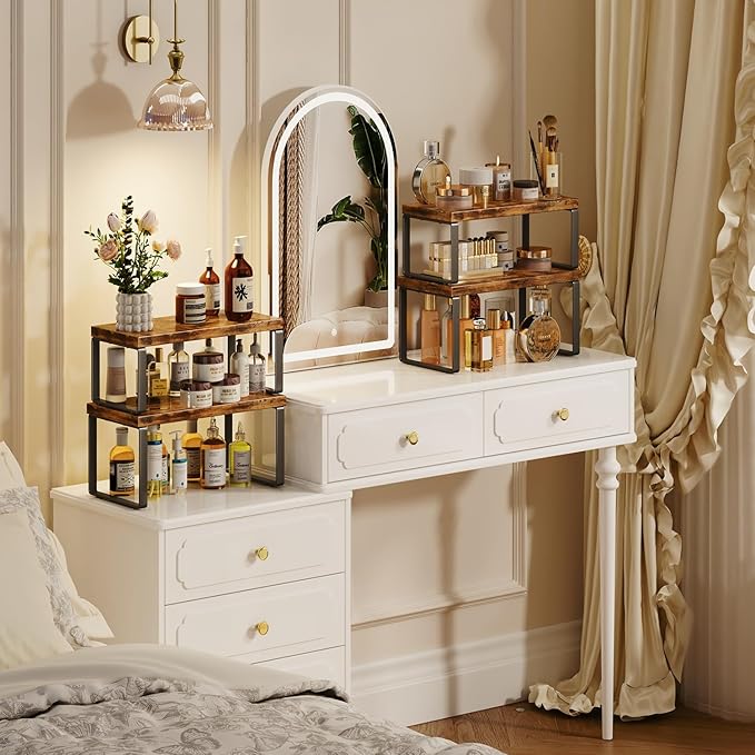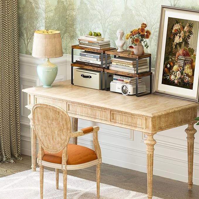 - STURDY STORAGE ORGANIZER: Each of our cabinet shelf organizer is made of study MDF wood and strong metal, with a maximum weight capacity of 35 pounds per tier. The vintage rustic industrial look of the desk organizer shelf will complement most of your furniture