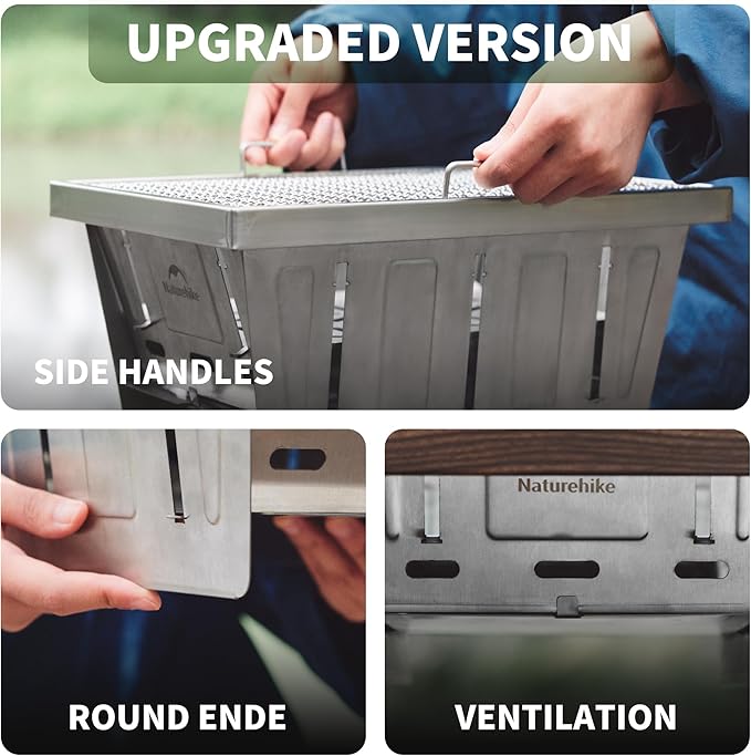 - [SET UP & FOLD IN SECONDS] Naturehike folding grill requires no assembly, it can be taken out of the carry bag and set up in seconds. 2 BBQ tongs and carry bag included.